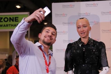 機(jī)器人明星“索菲亞”優(yōu)雅亮相 教粉絲拍照擺造型